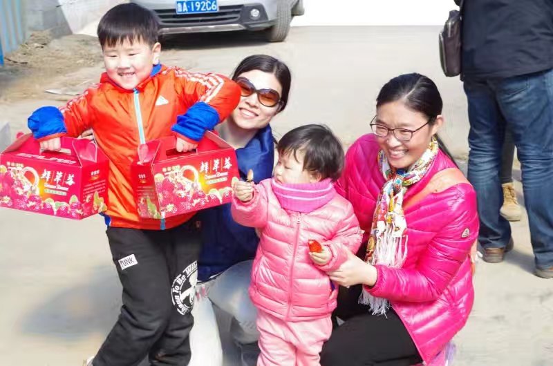 上午十时许,老师们所乘采摘活动大巴车顺利到达目的地。浓郁的春意,徐徐的清风,沁人的果香,莓园的自然气息顿时让大家心生陶醉。大家从园主手里领过一只只采摘盒,便迫不及待地走进草莓温棚去感受那份亲手采摘的自然乐趣。大家拎着果盒,或独自信步,或呼朋引伴,在畦垄之间穿梭,在葱茏之隙畅谈。采摘的过程中,草莓种植棚里翠绿的叶子、鲜红欲滴的果实和芬芳的果香让大家兴奋不已,大家一边品尝一边采摘,动手的快乐和品尝的喜悦,让种植棚中笑声不断。伴随着阵阵欢声笑语,女职工们享受着难得的轻松与欢快,平日里工作的疲劳也融化在这浓浓的春意里。不一会儿,大家便收获了一盒盒丰硕的“劳动成果”,走出草莓温棚,每一个人的脸上都洋溢着幸福快乐的笑容。