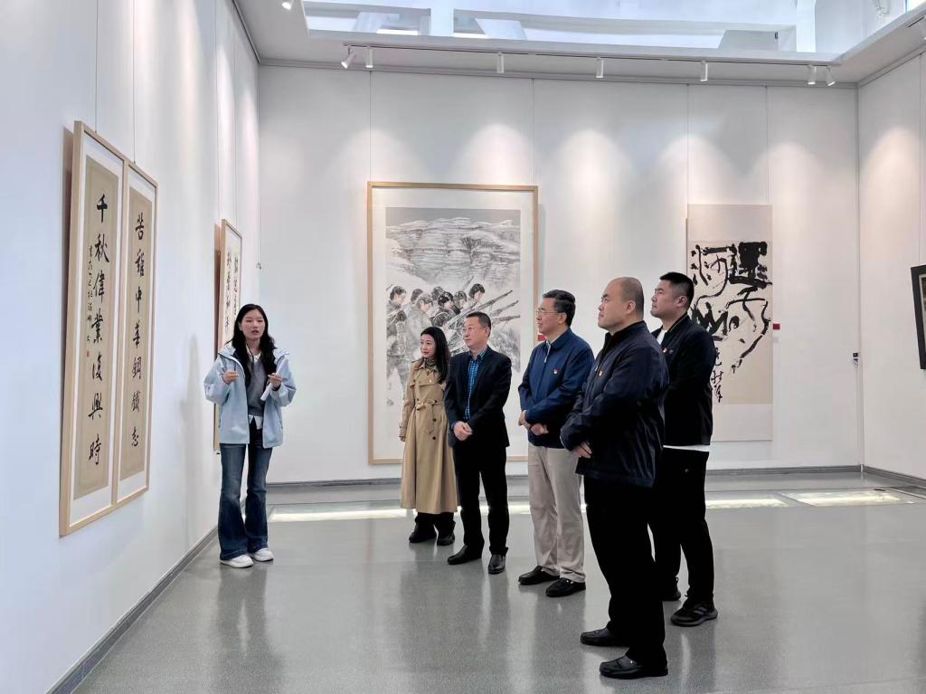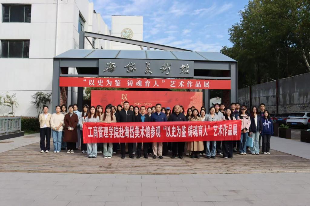 10月13日上午,437bwin必赢国际班子成员及研究生理论学习周周见同学们前往海岱美术馆,共同参观纪念中国人民抗日战争暨世界反法西斯战争胜利80周年“以史为鉴,铸魂育人”艺术作品展。艺术学院党委书记刘宝璋对我们师生的到来表示欢迎,并一同参与观展。