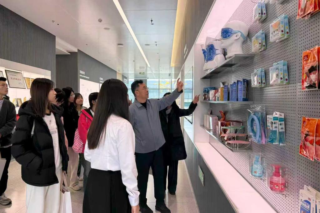 活动首站,师生一行抵达英科医疗张店厂区。在英科医疗招聘专员边文轩、姜晓莉的陪同下,大家先后参观了企业展厅、办公楼及张店PE车间,近距离观摩医疗器械及耗材的研发、制造全流程,切身感受高科技制造企业的创新活力与国际化运营特色。英科医疗人力资源部经理陈闽、英科再生人力资源部经理刘菁菁分别介绍了企业在医疗器械、环保再生资源领域的行业地位、技术优势(如全产业链布局、绿色循环技术等)及人才培养机制,同时表达了与学院深化合作的意愿,希望共同推动人才供需精准对接,探索产教融合新路径。